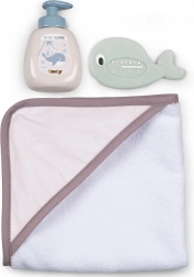 - Inclut un thermomètre de bain magique, un biberon avec pompe et une serviette de bain.