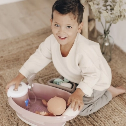 Une douche fonctionnelle permet un soin réaliste de la poupée, stimulant ainsi la créativité des enfants.