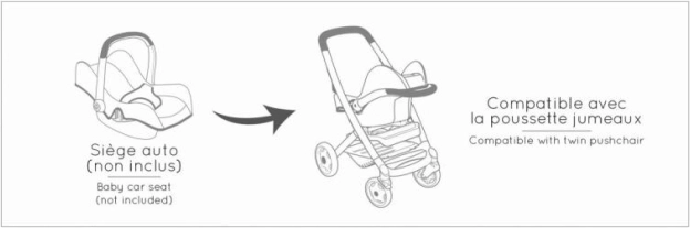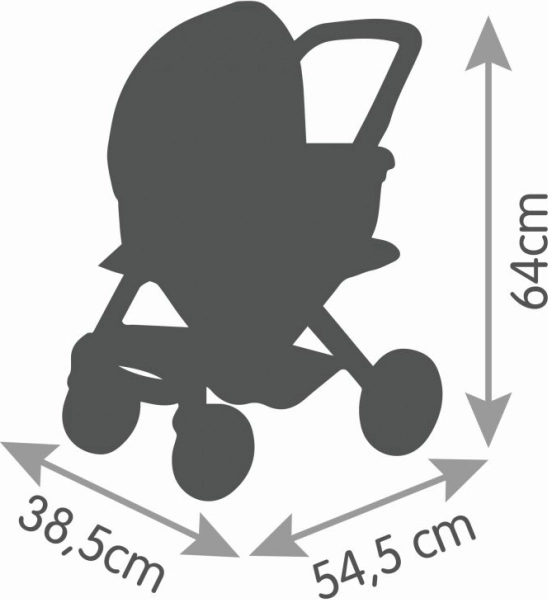 Les housses en tissu plastique robuste sont durables et faciles à entretenir – un simple coup de chiffon humide suffit. Les roues avant pivotantes et la couche antibruit garantissent un mouvement fluide, silencieux et stable à l’intérieur comme à l’extérieur. Convient aux poupées jusqu’à 42 cm (poupée non incluse).