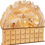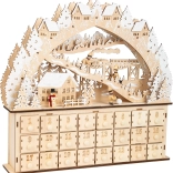 Vivez la magie de Noël avec ce calendrier de l’Avent en bois représentant un village pittoresque ! Des détails comme les maisons enneigées, les petits sapins, les skieurs et le bonhomme de neige vous apporteront de la joie chaque jour. Vous pouvez remplir les tiroirs du calendrier de petits cadeaux ou de friandises pour les enfants.