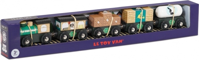 Adorable train de marchandises en bois de couleur verte de Le Toy Van, prêt pour des aventures pleines d’imagination. Fabriqué en bois durable, peint à la main avec des peintures à base d’eau non toxiques et doté de attaches magnétiques pour relier facilement les wagons. Compatible avec la plupart des circuits de trains en bois, il développe la motricité, le langage et les compétences sociales. Idéal pour les enfants dès 3 ans.