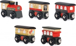Grâce à l'attelage magnétique, les enfants connectent facilement la locomotive à cinq wagons, entraînent la coordination œil-main et développent des compétences sociales lors du jeu collaboratif. Le train est compatible avec les voies et circuits de trains en bois courants.
