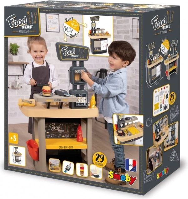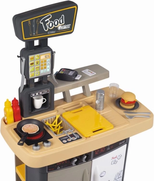 Ouvrez votre propre petit fast-food ! Le Food Corner 2-en-1 de Smoby combine une cuisine et un comptoir de service avec caisse. Les enfants peuvent préparer des burgers, des frites ou des crêpes et en même temps servir les clients au comptoir – exactement comme dans un vrai restaurant.