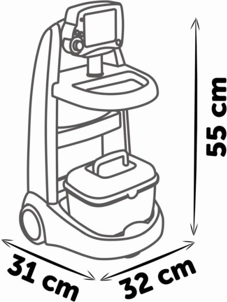 Le chariot médical électronique SMOBY offre aux enfants un jeu de docteur réaliste. Grâce au module ECG électronique intégré avec des sons authentiques, les enfants peuvent essayer la mesure des fonctions vitales et l’auscultation du pouls. Le chariot est léger, stable et facile à manœuvrer grâce à ses deux roues, ce qui le rend accessible même aux plus petits. Tous les accessoires se rangent facilement dans la mallette incluse.