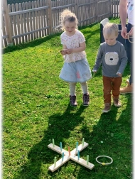 Profitez d’heures de divertissement avec ce jeu de lancer d’anneaux en bois ! Ce jeu entraîne la coordination œil-main et améliore la précision ainsi que la motricité fine.