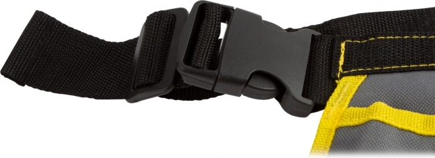 La ceinture possède 8 compartiments, une boucle pour marteau et un mousqueton pour organiser facilement les outils.