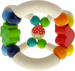 Le hochet amanite en bois est fabriqué en bois de qualité avec une clochette métallique. Son design aux couleurs modernes et ses finitions lisses sont délicats pour les mains des enfants, tandis que sa construction légère facilite la prise en main. Ce jouet convient aux bébés dès la naissance et favorise la perception sensorielle ainsi que les premiers mouvements intentionnels.