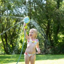 Les enfants adorent passer du temps dehors et cet arroseur de jardin leur offrira des heures de divertissement. Il peut être posé au sol, tenu à la main ou fixé à une maisonnette de jardin. L’arroseur propose deux modes de pulvérisation d’eau – continu et rotatif – commutables via un bouton dédié.