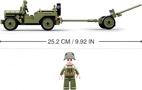 La combinaison du jeep, de la remorque et du canon offre de nombreux scénarios de jeu – de la reconnaissance à la défense de convoi. Des détails soignés et des proportions fonctionnelles donnent à la construction un aspect réaliste.