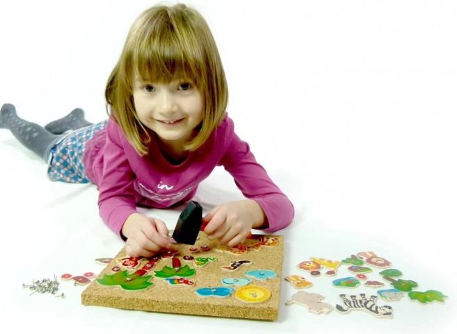 Ce jeu à marteler en bois de haute qualité offre aux enfants des heures d’amusement intelligent. Grâce aux formes variées en contreplaqué imprimé, les petits créateurs peuvent composer leurs propres scènes de safari, développer leur créativité et leur logique. La plaque en liège assure un martelage sûr et confortable, et les grandes têtes demi-rondes des clous facilitent la manipulation.