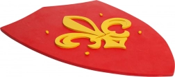 La couleur rouge vive et la fleur de lys jaune confèrent au bouclier un charme médiéval. Idéal pour les costumes ou comme décoration de chambre d’enfant.