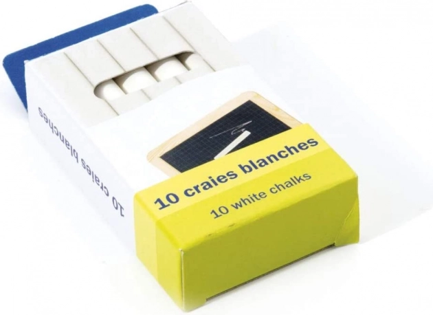 Ensemble de craies blanches en carton idéal pour écrire sur le tableau, un complément approprié pour les enfants à partir de 3 ans.