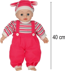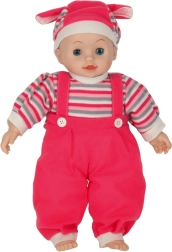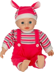 En appuyant sur son ventre en tissu, la poupée émet 4 sons réalistes : des pleurs, des rires et les mots « maman » et « dada ». Jouer avec la poupée aide les enfants à imiter les adultes, à développer des compétences sociales, l’empathie et la capacité d’exprimer leurs émotions.
