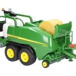 La presse combinée à balles rondes JOHN DEERE reproduit fidèlement les machines agricoles réelles et complètera à merveille toute ferme pour enfants. À l’échelle 1:16, elle offre des fonctions qui agissent réellement pendant la conduite – du ramasseur rotatif à la trappe ouvrante pour insérer facilement la balle.