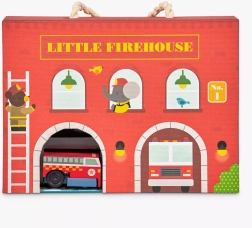 Ce set de jeu créatif Little Firehouse ravira tous les petits sauveteurs. La caserne de pompiers en carton double face, la petite voiture en bois à remonter et l’ensemble de circuits et d’accessoires créent un décor réaliste pour des scénarios de jeu palpitants. Les pièces se montent facilement et tout est prêt pour l’action en un rien de temps.