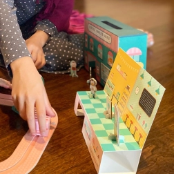 Conçu dans le respect de la planète – le carton, le papier et le bois utilisés sont certifiés FSC, l’emballage est entièrement sans plastique. Le set stimule la motricité fine, l’imagination et le jeu de rôle pour les enfants dès 3 ans.