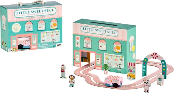 Ce joli set de jeu transporte les enfants dans un monde de douceurs et d’imagination. Remonte la voiture de glacier, regarde-la faire le tour de la pâtisserie et invente tes propres histoires. Grâce à ses dimensions compactes et à sa poignée pratique, il est parfait aussi pour les déplacements.