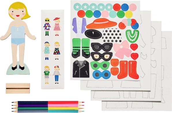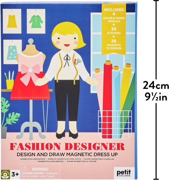 Le jouet comprend une figurine magnétique avec un support en bois, 36 pièces d'habillage magnétiques, 4 crayons de couleur réversibles et 35 autocollants, permettant de créer plus de 100 tenues différentes. Les enfants peuvent exprimer leur créativité et développer leur imagination grâce à la diversité des pièces et aux possibilités de combinaison. La boîte sert non seulement d'espace de rangement, mais aussi de toile de fond agréable pour le jeu, rendant l'expérience complète et esthétique.<02p>