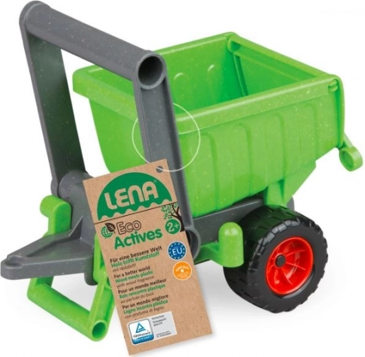 Le principal avantage de la remorque Lena Eco est l'utilisation de matériaux écologiques. Le jouet est fabriqué à l'aide de matériaux recyclés et d'additifs en bois, ce qui contribue à la protection de l'environnement.