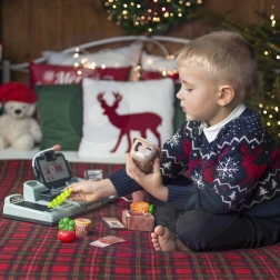 La caisse comprend un terminal, permettant à l'enfant de réaliser des paiements en espèces, par carte ou smartphone, comme les adultes au magasin. Une balance intégrée et un tapis roulant mobile permettent à l'enfant de s'organiser et de jouer le rôle réel de vendeur.3c/p>