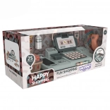 La caisse comprend une balance, un terminal, une calculatrice, un scanner et de nombreux accessoires, y compris un smartphone ludique et divers types d'aliments en plastique.3c/p>
