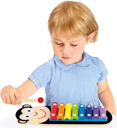 Xylophone pour enfants avec motif de petit singe. Ensemble en 3 pièces avec 8 lames sonores métalliques offrant un jeu sur toute la gamme. Le xylophone permet aux enfants de se familiariser avec les bases de la musique et de développer leur talent musical. C’est donc le jouet idéal pour les premiers pas musicaux. Peinture non toxique, coins arrondis et surfaces lisses pour des moments musicaux en toute tranquillité. Convient aux enfants à partir de 18 mois. Avertissement ! Pour les enfants de moins de 18 mois, à utiliser uniquement sous la surveillance d’un adulte. Principales caractéristiques : ensemble en 3 pièces, 8 sons, développe le talent musical