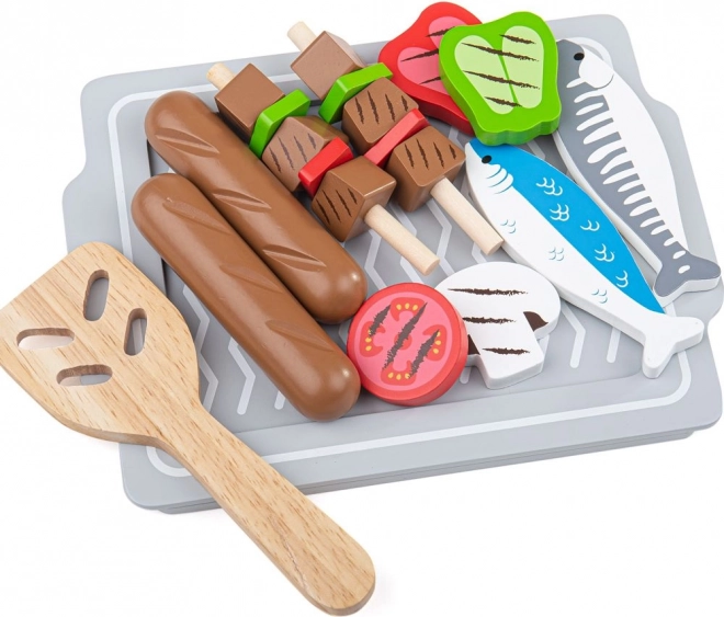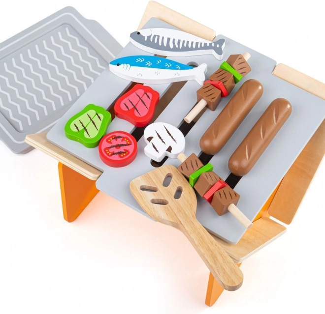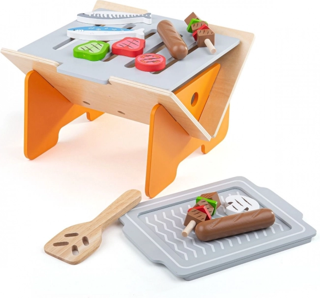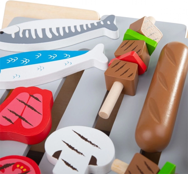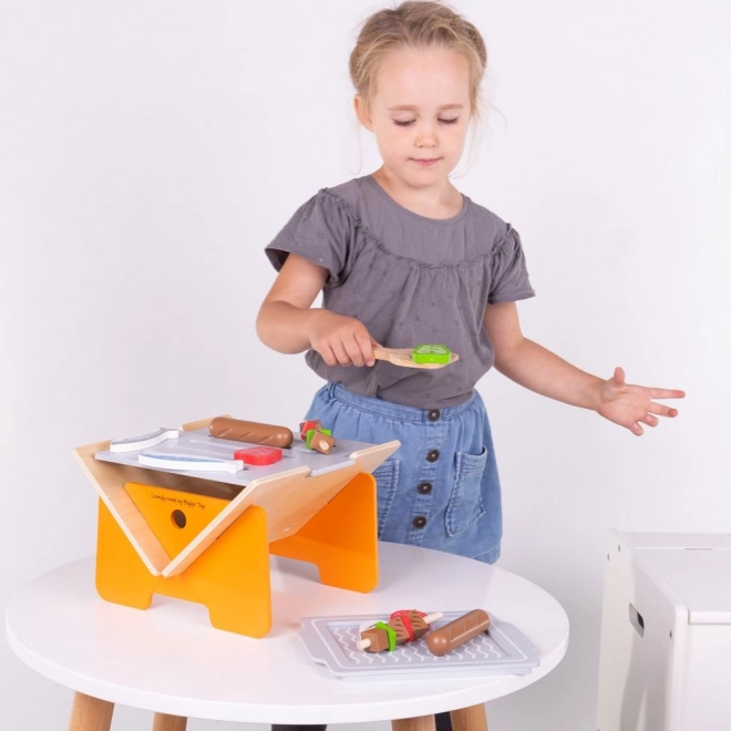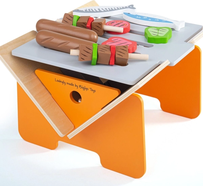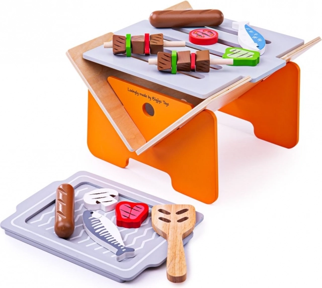 Organisez une fête au jardin avec le barbecue de table en bois de Bigjigs Toys ! Contient 10 pièces d’aliments, une spatule, un plateau et des charbonnets. Montage facile sans vis. Fabriqué à partir de matériaux durables.