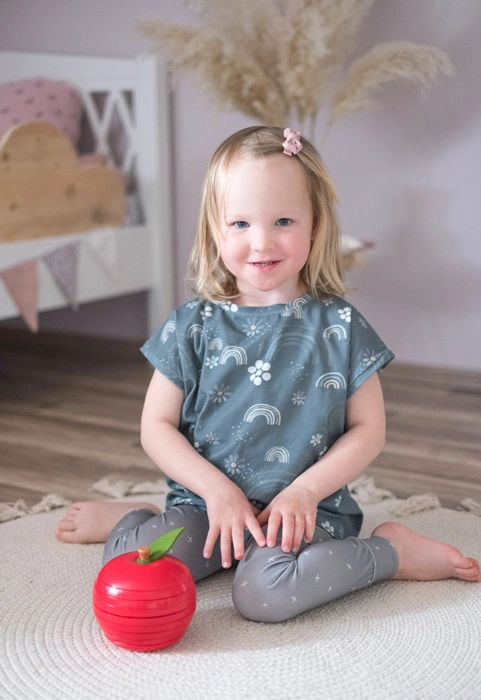 La pomme assemblée se distingue sur une étagère ou dans un coin jeu. Un design attrayant qui plaira aux enfants comme aux adultes.