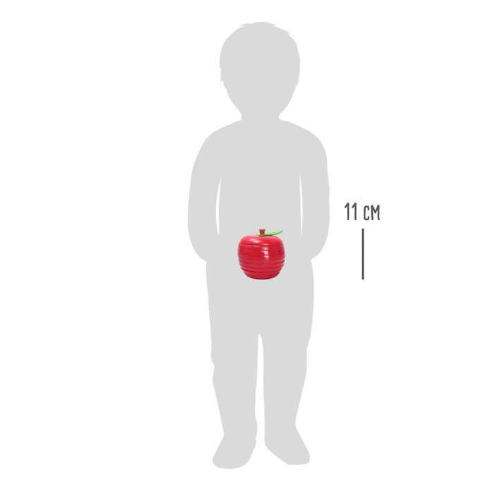 Une conception en bois durable avec surface lisse, feuille en feutre et couleurs éclatantes garantit une longue durée de vie et un look attrayant. La pomme assemblée deviendra un ornement pour toute étagère et un excellent cadeau pour les enfants dès 3 ans.