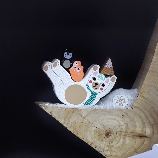 Les enfants empilent des animaux, des flocons et des formes sur l’ourson qui se balance et apprennent à équilibrer chaque pièce avec délicatesse.