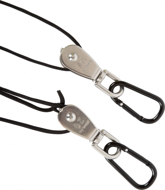 Des mousquetons pratiques permettent une fixation rapide à une poutre, un crochet ou un ancrage provisoire – sans outils, en un instant.