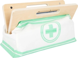 Ce set médical soigneusement conçu combine bois naturel et textile de qualité pour un jouet sûr et amusant à partir de 3 ans. La sacoche pratique à fermeture magnétique garde tous les instruments ensemble et, grâce à la croix verte bien visible, elle est toujours facile à retrouver.