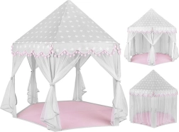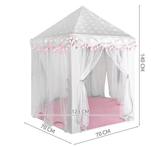 Créez pour les enfants un coin sûr pour se reposer et laisser libre cours à l’imagination. La tente possède un toit conique, 6 entrées ouvertes avec voilages clairs et respirants, et un design gris‑rose étoilé qui s’intègre à la chambre d’enfant comme à l’espace de jeu. Grâce à la structure légère à clips, vous l’assemblez en un rien de temps et la transportez ou rangez tout aussi facilement.