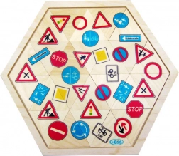 Découvrez un jeu éducatif ludique pour les enfants dès 3 ans : un puzzle mosaïque sur le thème des panneaux de signalisation de la marque HESS. L’ensemble comprend 24 pièces en bois imprimées en couleur dans un cadre robuste en bois de bouleau, qui favorisent la motricité fine, la concentration et l’association logique grâce à l’observation, la comparaison et l’assemblage des motifs corrects.
