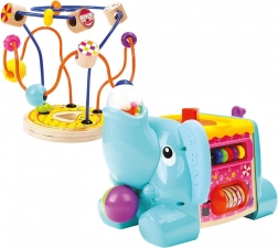 Le jouet encourage la découverte et l’apprentissage par le jeu – de la différenciation des couleurs et des formes à la résolution de petites tâches. La combinaison robuste de bois, métal et plastique garantit stabilité et longévité, tandis que les bords arrondis et la finition de qualité assurent la sécurité lors d’un usage quotidien.