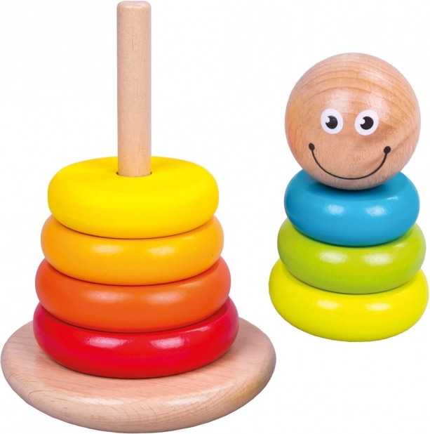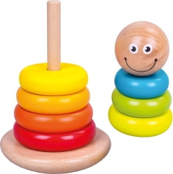 Ce jouet d’empilage en bois avec anneaux colorés favorise un apprentissage naturel par le jeu. Les enfants s’exercent au tri par taille, à la reconnaissance des couleurs et entraînent leur dextérité en enfilant les anneaux sur la tige. Le jouet possède une surface lisse et une base stable pour un jeu en toute sécurité.