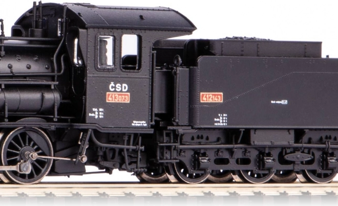 Le modèle de la locomotive à vapeur ČSD série 415 (G 7.1) de Piko convainc par sa construction robuste, sa marche souple et son aspect authentique. Le châssis massif moulé et la transmission soigneusement conçue garantissent d’excellentes qualités de roulement même à basse vitesse. Des marquages nets, une livrée fidèle et des proportions réalistes avec un faible interstice entre la locomotive et le tender renforcent l’impression générale.