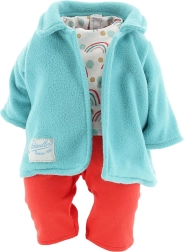 La tenue Petitcollin Arthur transforme toute poupée de 36 cm en élégant compagnon de jeu. Le set associe un sweat polaire turquoise, une blouse joyeuse à motifs, un short rouge et un bonnet assorti – ensemble, ils créent une tenue attrayante et confortable pour les aventures du quotidien.
