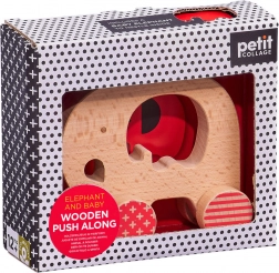 Le jouet développe les compétences de traction et de poussée, entraîne la préhension et la représentation spatiale grâce à l’éléphanteau qui s’insère dans l’ouverture centrale. Sa structure robuste en hêtre massif garantit une longue durée de vie et un entretien facile.