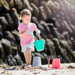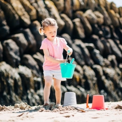 Construire des châteaux, transporter de l’eau ou aider au jardin – un seul seau, d’innombrables possibilités pour un jeu créatif à la maison comme en voyage.