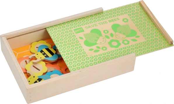 Ce jeu est idéal pour les enfants à partir de 3 ans qui souhaitent comprendre de manière ludique l'importance des abeilles dans notre écosystème. Les joueurs lancent le dé, cherchent les correspondances de couleurs et aident ainsi les abeilles à collecter le nectar. L'ensemble du jeu est fabriqué en contreplaqué durable et papier recyclé, garantissant une approche écologique.