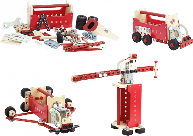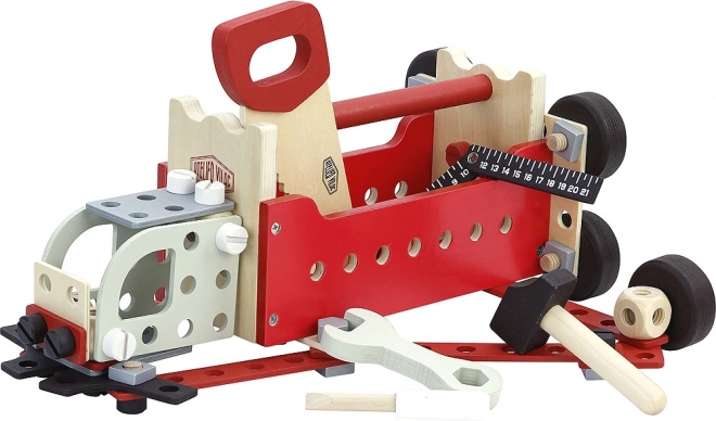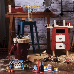 Vous cherchez un jouet qui développe les compétences motrices et la pensée créative de vos enfants ? La mallette à outils réversible Vilac est le bon choix ! Cet ensemble comprend jusqu’à 96 pièces permettant d’assembler des constructions modulaires comme un camion, une grue ou même un robot. Le design de l’Atelier Vilac garantit une finition de qualité et un look vintage attrayant. Les enfants pourront se glisser dans la peau d’un petit bricoleur et illuminer leur royaume de jouets.
