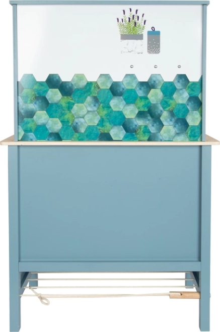 Les surfaces du réfrigérateur et du four sont imprimées avec des détails de cuisine pour plus de plaisir. Le panneau arrière réversible propose un look carrelage moderne ou un design bleu uni. La cuisine est un excellent complément aux autres produits et appareils de la collection Tasty.