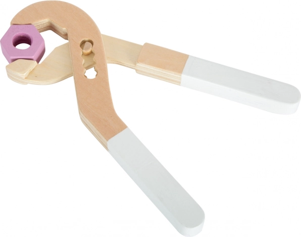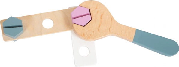 Des outils en bois, dont une clé à molette, un cliquet, un tournevis et une clé, offrent de multiples possibilités de jeu et d’apprentissage.
