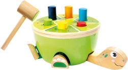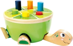 Ce jeu de martelage tortue de Bino est un choix idéal pour les premières activités motrices. Les enfants martèlent en toute sécurité les chevilles colorées dans la carapace à l’aide d’un marteau en bois avec revêtement en feutre doux. Le jeu développe naturellement la motricité fine, la coordination œil–main et la concentration, et grâce à son design joyeux, le jouet retient l’attention pendant longtemps.