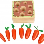 Découvrez un jeu amusant et éducatif pour les enfants avec la méthode Montessori ! Ce set en bois offre un jeu d'insertion et de triage de formes avec des carottes de différentes tailles, permettant aux enfants de développer leur motricité fine et leur compréhension des tailles de manière ludique.