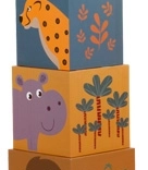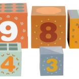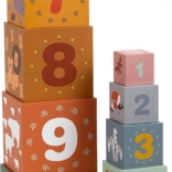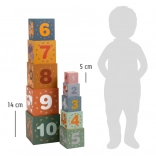 Tour empilable colorée en cubes de carton avec motifs d’animaux et chiffres 1–10, qui favorise les premiers apprentissages des enfants. Les enfants s’exercent au comptage, à la distinction des couleurs et tailles ainsi qu’à la motricité fine. Les cubes peuvent être empilés ou emboîtés pour gagner de la place. Impression de qualité et couleurs modernes. Plus grand cube 14 cm, plus petit 5 cm. À partir de 12 mois.