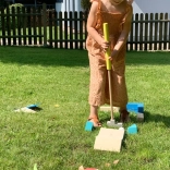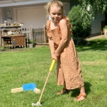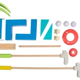 Mini-golf pour enfants amusant pour la maison et le jardin, en bois certifié FSC de haute qualité. Le set comprend 3 tailles de clubs, des balles souples et sûres ainsi que des obstacles modulables (vague, balançoire, tunnel, etc.) que vous adaptez facilement à l’âge et aux compétences. Il entraîne l’adresse et la concentration et offre un design moderne avec une fabrication durable.
