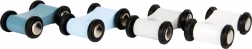 La structure stable et arrondie combine bois naturel et blanc avec de douces nuances de bleu et de vert. Sont incluses 4 petites voitures (1 naturelle, 3 colorées) avec roues caoutchoutées pour un mouvement silencieux et fluide. Le jouet est idéal pour jouer seul ou à plusieurs et s’intègre joliment dans la chambre d’enfant.