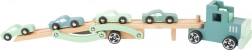 Le set comprend un camion avec remorque et au total quatre petites voitures de sport. Le jeu développe la coordination œil-main, la motricité fine et le récit créatif. Grâce à des matériaux de qualité et à des bords soigneusement polis, le jouet convient aux enfants dès 3 ans.